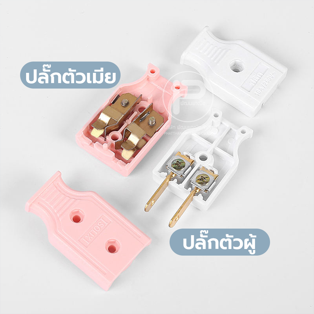 รายละเอียดสินค้า : ปลั๊กไฟตัวผู้ ปลั๊กไฟตัวเมีย พลาสติกอย่างดี ขาทองเหลือง